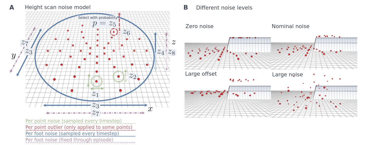 To assess the effectiveness of the attention mechanism in reconstructing privileged exteroceptive information, we conduct a simulation experiment on a quadruped robot. Multiple videos are recorded for analysis, where dots underneath the robot represent either: